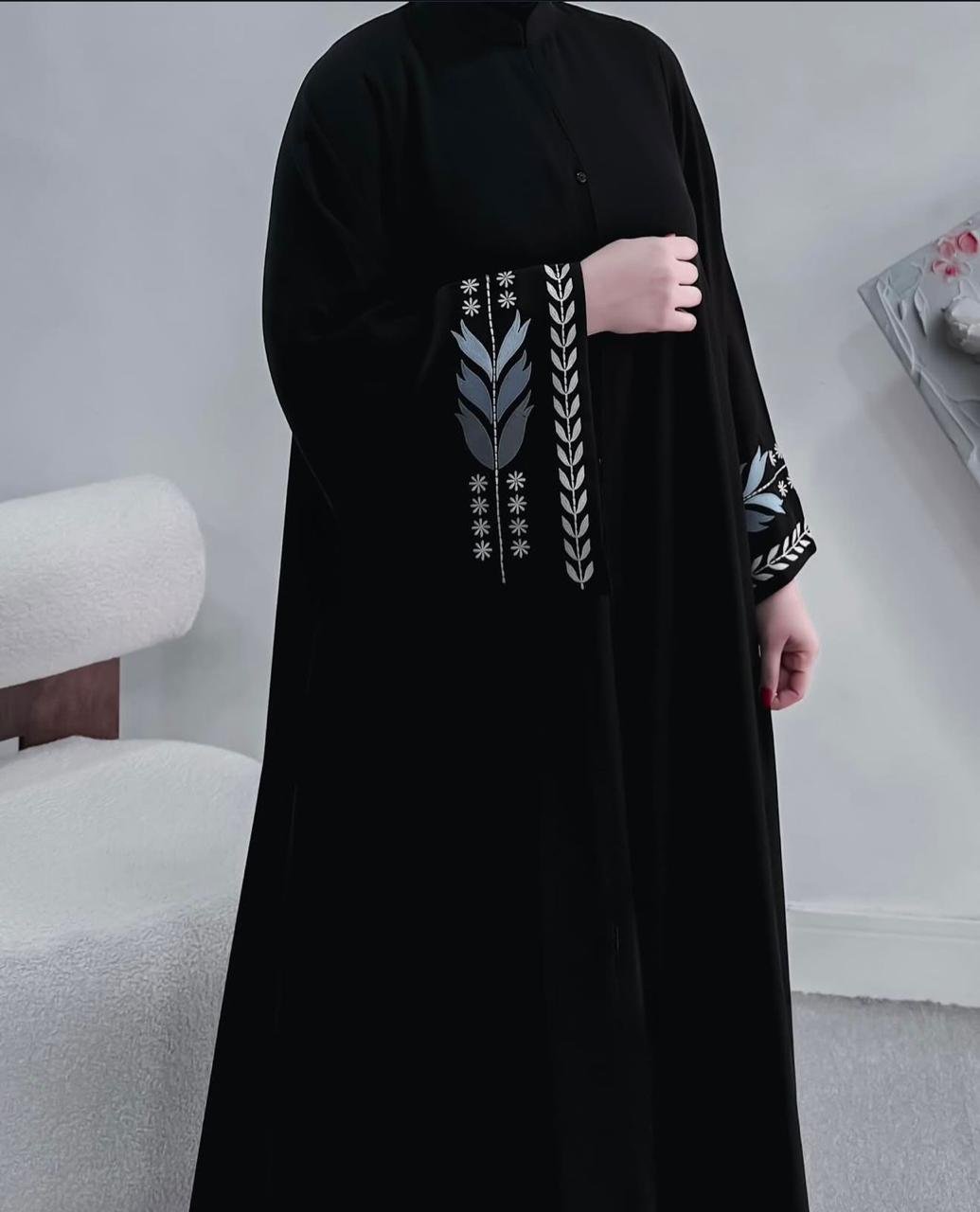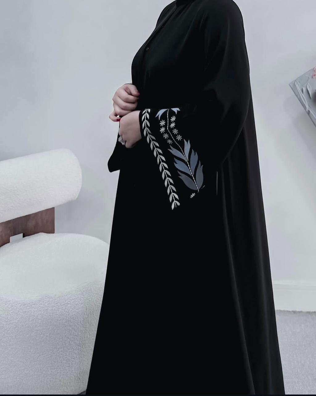 عباية تطريز فضي كبسولات